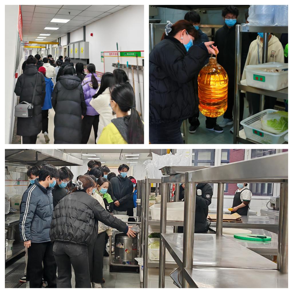 活动分为食堂开放日与冬至美食体验两个环节。在李卓带领下,同学们按要求穿戴好口罩后走进了食堂后厨,依次参观了仓储区、加工区、烹饪间及餐具洗消间。李卓就食材采购渠道、保鲜标准、菜品加工流程、日常卫生管理与全面消杀规范等环节进行了细致讲解,从源头到餐桌,每一个环节的透明化展示与答疑,让师生对校园餐饮的安全管控与规范运作有了直观而深入地了解。