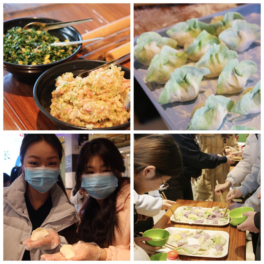 冬至美食体验现场热闹非凡。师生们纷纷挽袖上阵,化身“美食达人”——手指轻捻,面团在掌间舒展;擀面杖滚动,圆润的面皮如雪花般铺开;巧手翻飞之间,一只只饱满的饺子悄然成形,动作从生疏到熟练,笑语不断;一旁的糖球制作区域更是香甜四溢,山楂、葡萄、圣女果等食材被巧妙地串起,裹上晶莹剔透的糖衣,化作冬日里一抹甜蜜的风景。这场亲手参与的美食之旅,不仅让师生体会到劳动与合作的乐趣,更让传统节气文化在指尖传递、心中生根。