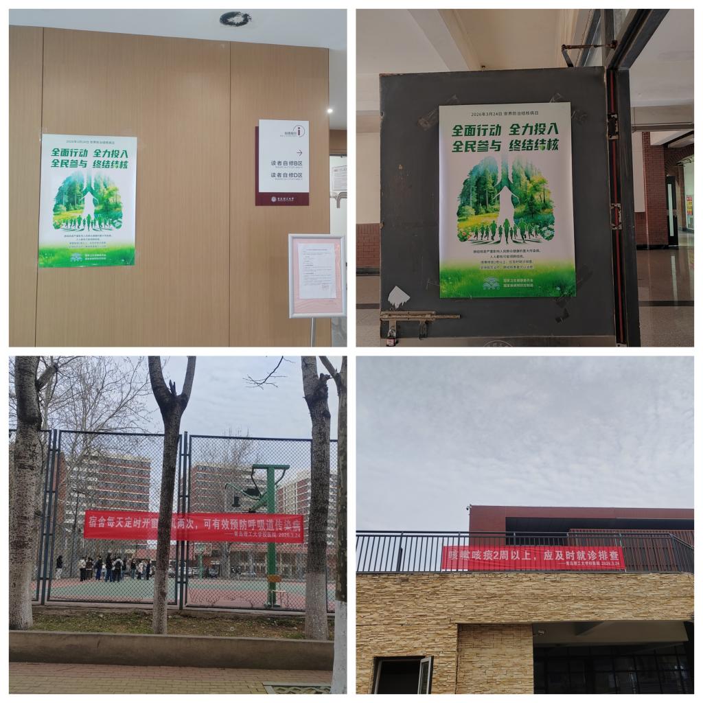 活动期间,校医院在教学楼、图书馆、宿舍楼大厅、交通干道、体育馆等公共场所醒目位置张贴结核病防控主题海报、悬挂温馨提示标语,通过简洁直观的画面、通俗易懂的文字,让结核病防控知识“触手可及”,在潜移默化中营造出“人人知晓结核、人人重视防控”的浓厚校园氛围。
