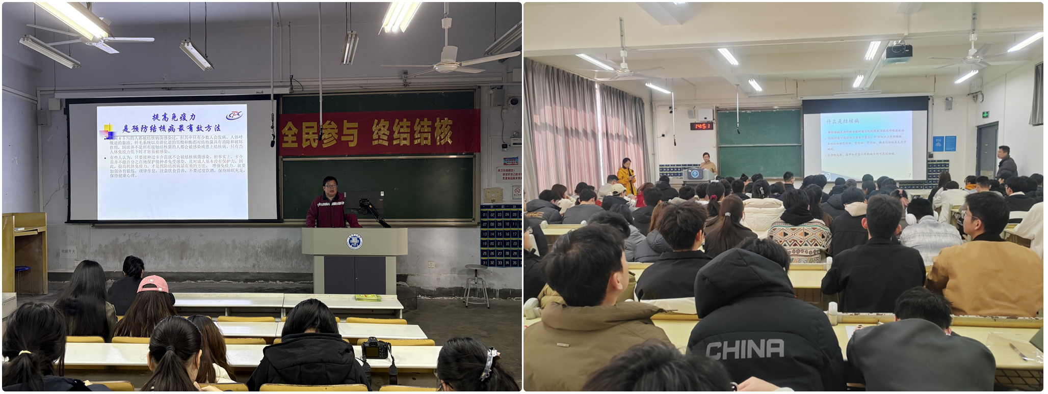 25日下午,校医院邀请青岛市市北区疾控中心主任宁昌鹏、西海岸新区结核病防治所公共卫生科主任徐燕开展结核病防控专题讲座。讲座结合学校实际,围绕结核病基础知识、新生结核病筛查及治疗管理等方面,向师生系统讲解相关防控知识,内容贴近日常、实操性强,还设置了有奖问答与扫码答题环节,让大家在轻松的氛围中巩固所学知识,现场反响热烈。