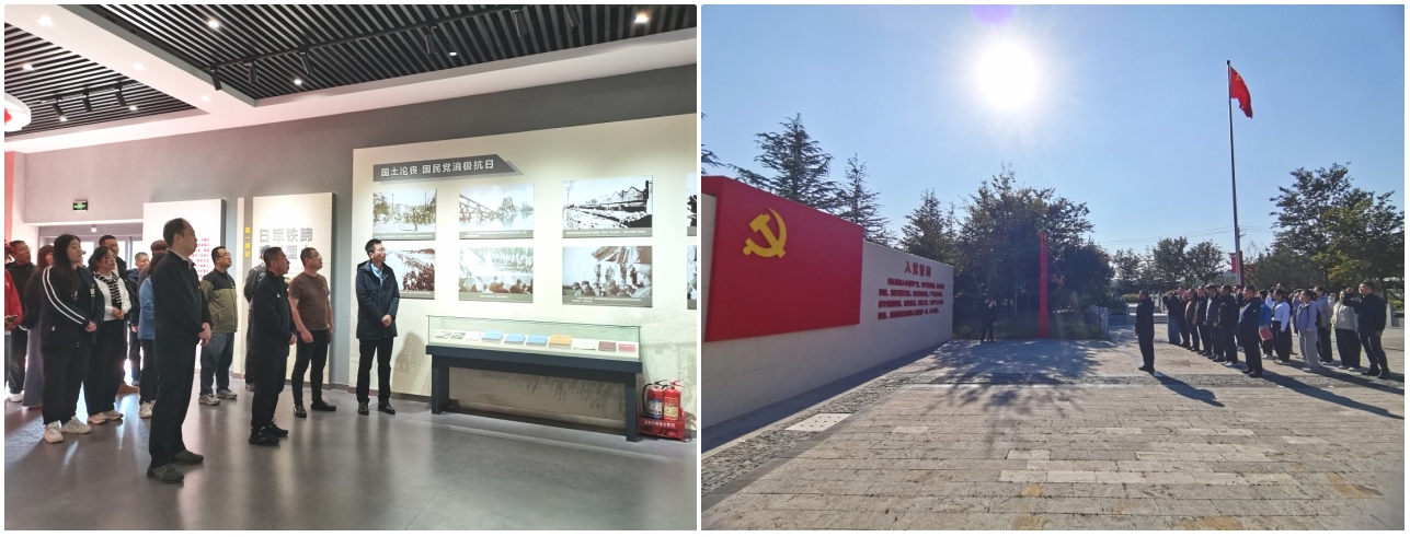 在杨家山里红色教育基地,党员同志们通过沉浸式参观学习,深入了解了抗战时期五个县级党组织坚守使命、发挥“红色堡垒”作用的奋斗历程,深刻感悟革命先辈依靠群众、攻坚克难的优良传统和不畏艰险、使命在肩的担当精神。全体党员面向党旗庄严宣誓,重温入党誓词,铿锵有力的誓言充分彰显后勤党员坚守信念、履职尽责的坚定决心。